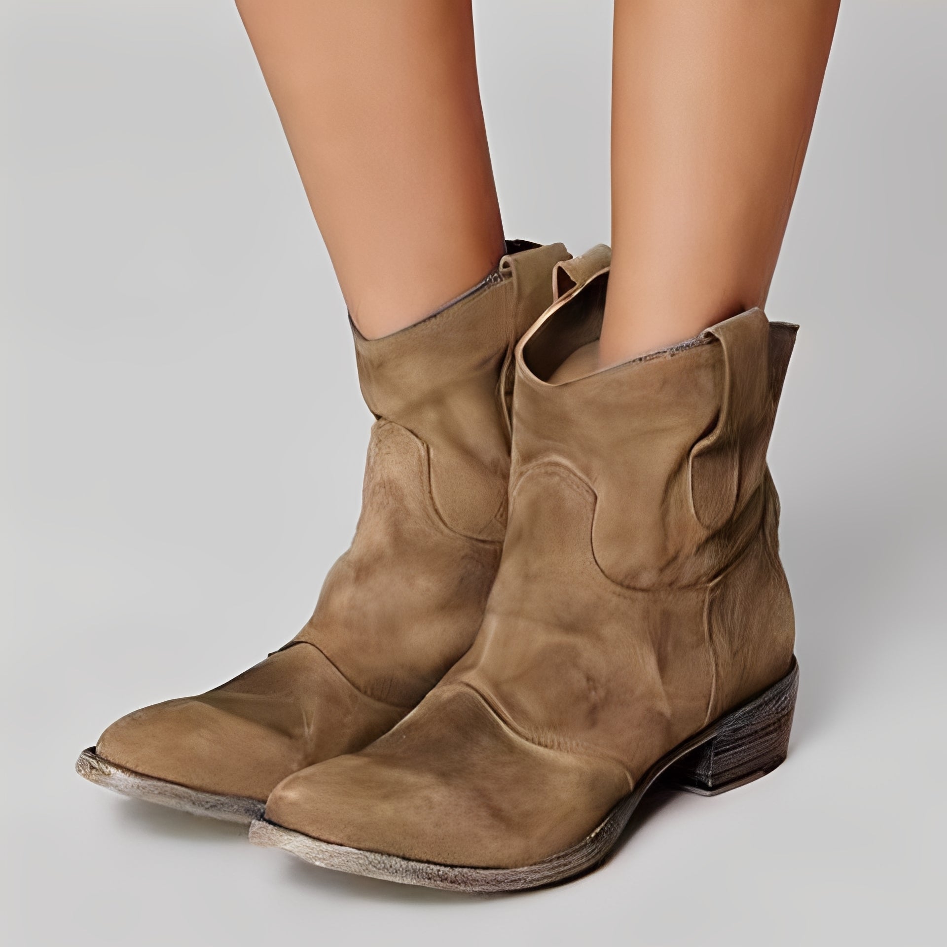 Lenora - vintage kožené dámské kozačky s nízkým podpatkem