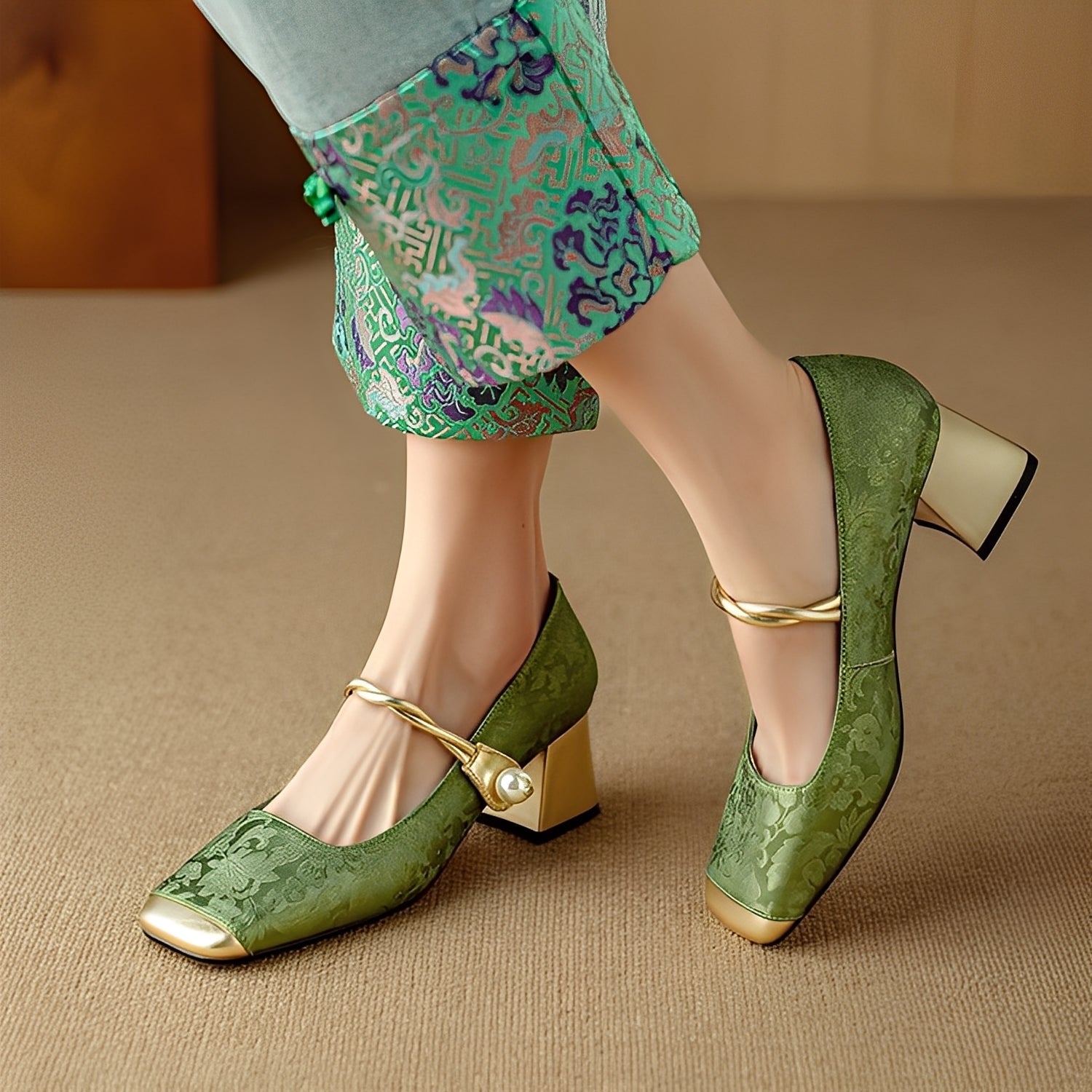Evelyn - Stylové, ražené hedvábné sandály na podpatku pro ženy