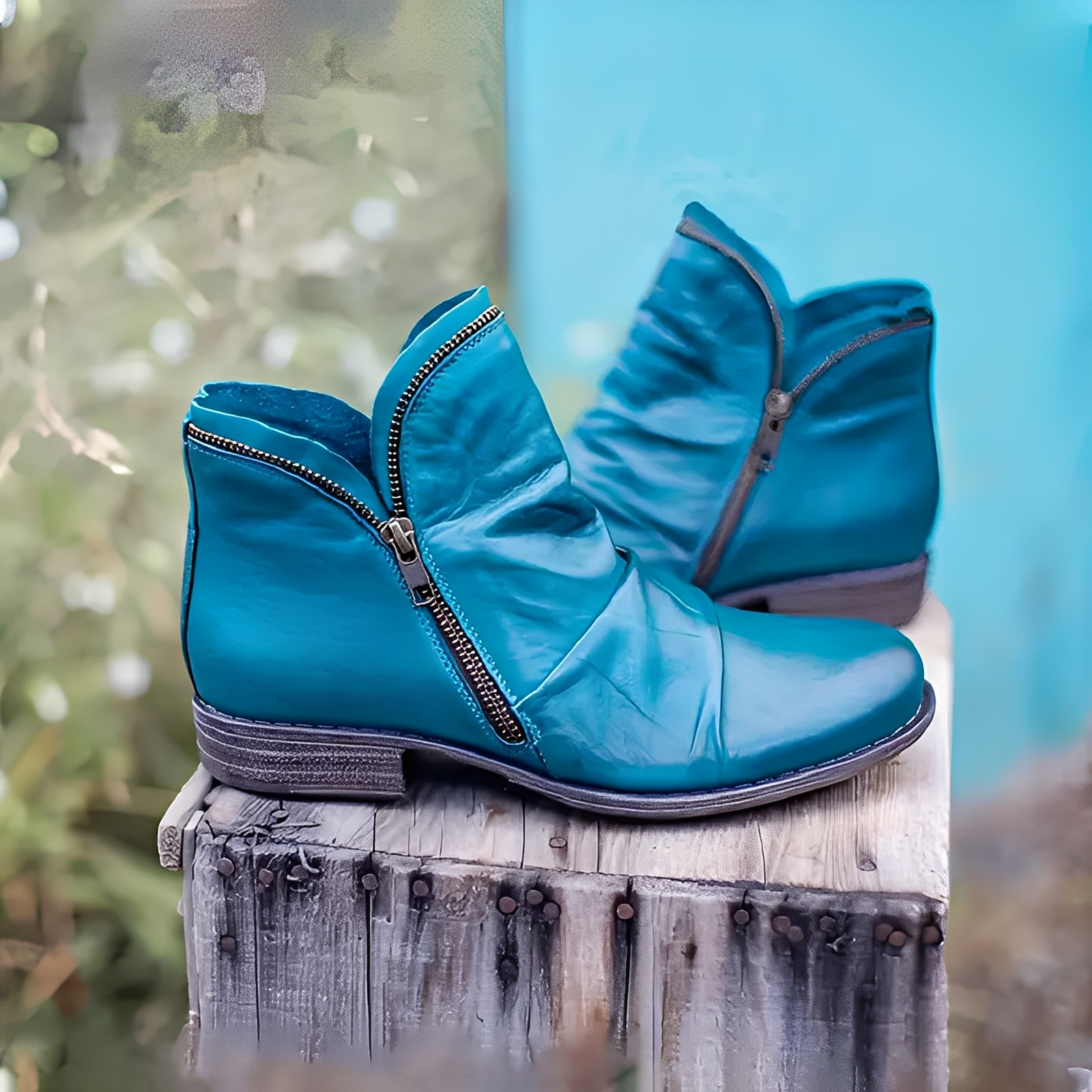 Lenora - vintage kožené dámské kozačky s nízkým podpatkem
