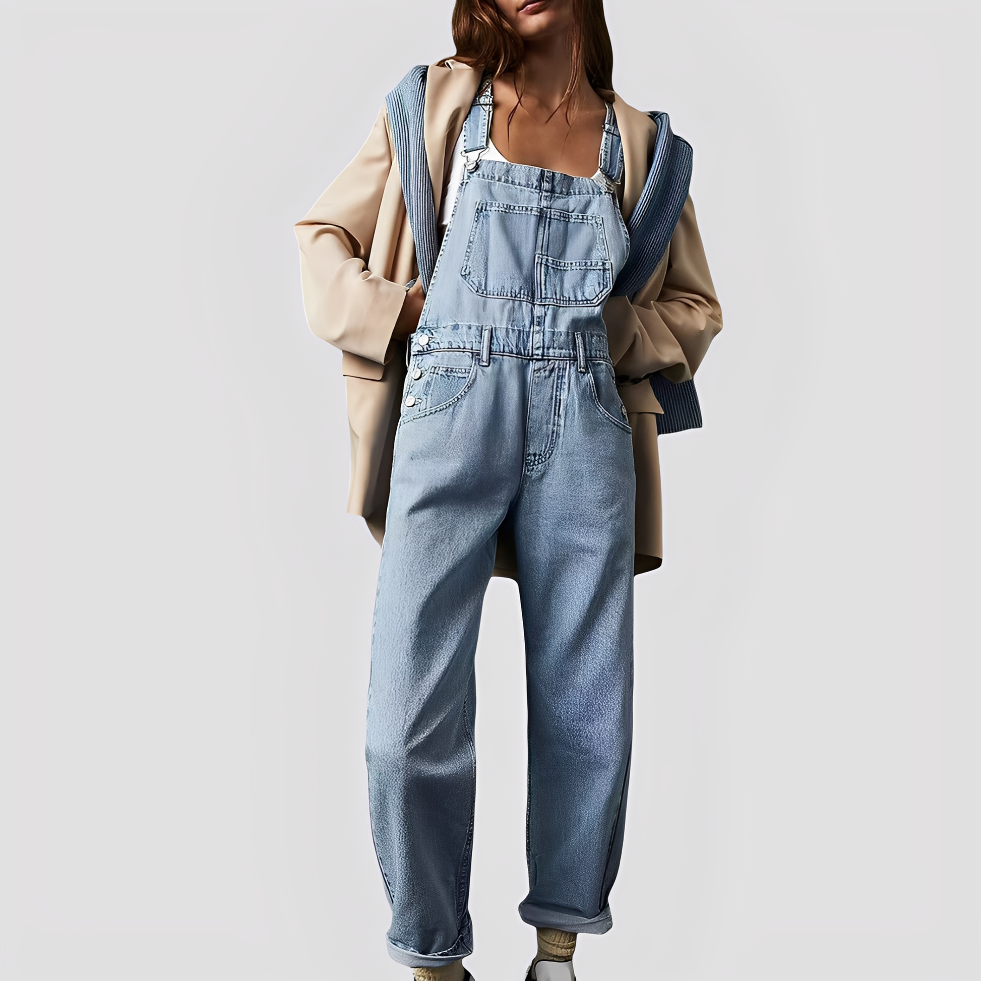 The Mildred jeans overalls are characterized by their cozy cut and high-quality denim fabric, which is both comfortable and durable. With practical pockets and adjustable straps, they are versatile and functional. Their cool, casual style makes them perfect for leisure, outings, or relaxed days.