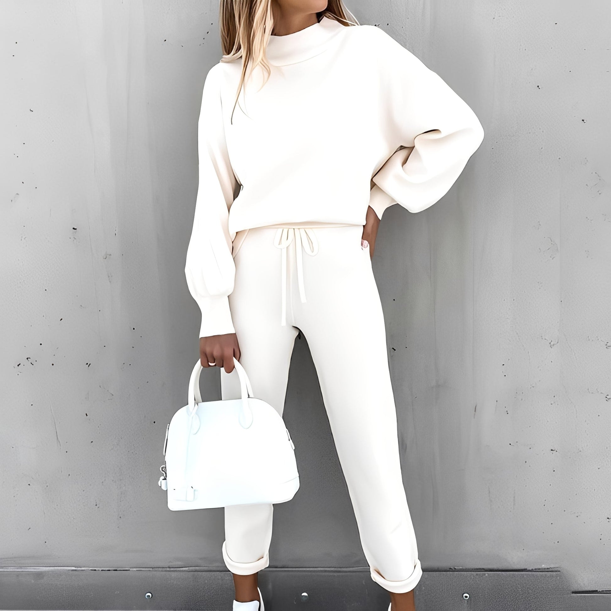 The "Quincey" set includes a top and matching pants made of soft and comfortable fabric. The casual cut allows freedom of movement and comfort, while the modern design ensures an elegant look. Perfect for at home, walks, or leisure – this set effortlessly combines fashion and function.