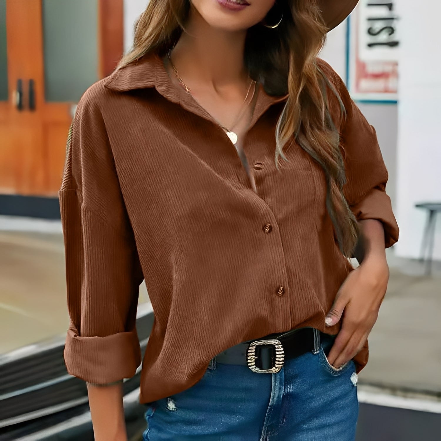 Everly - Luźna, wygodna sztruksowa bluzka dla kobiet