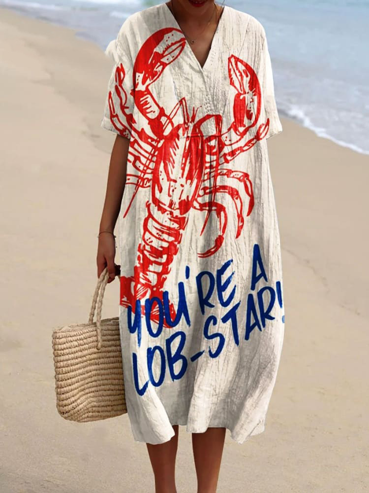 Kasandra - Sukienka z lejącym się materiałem z marynistycznym wzorem