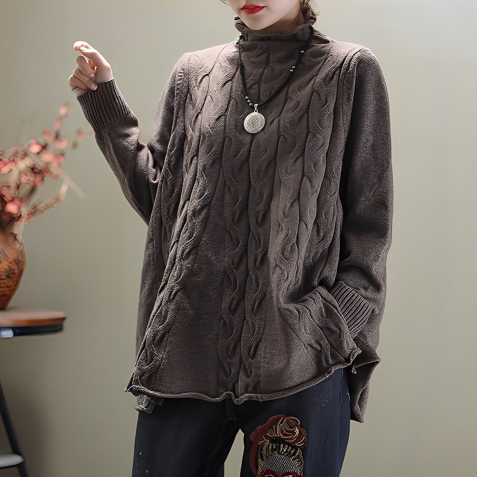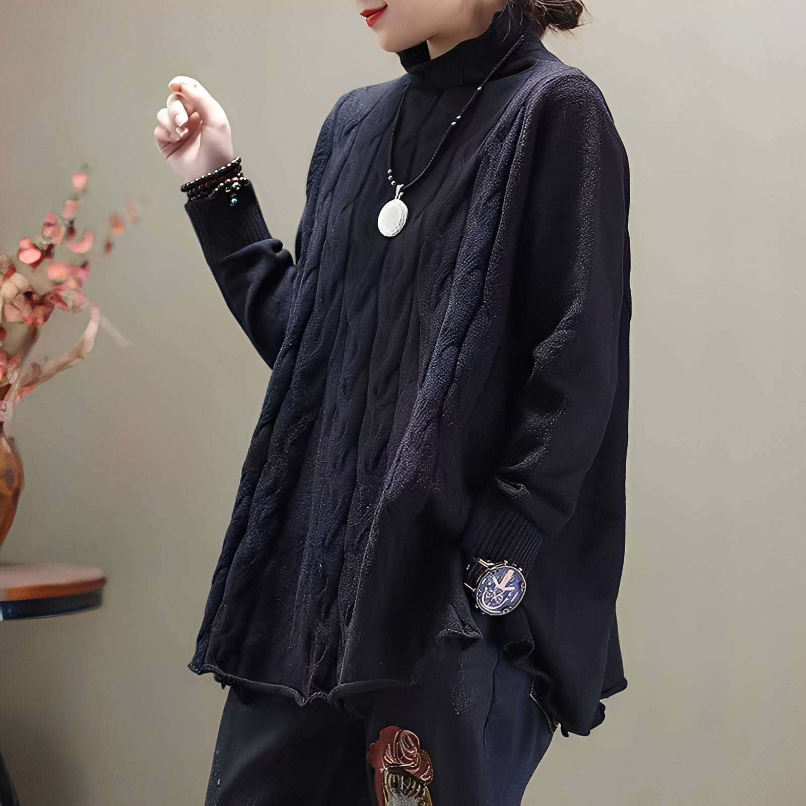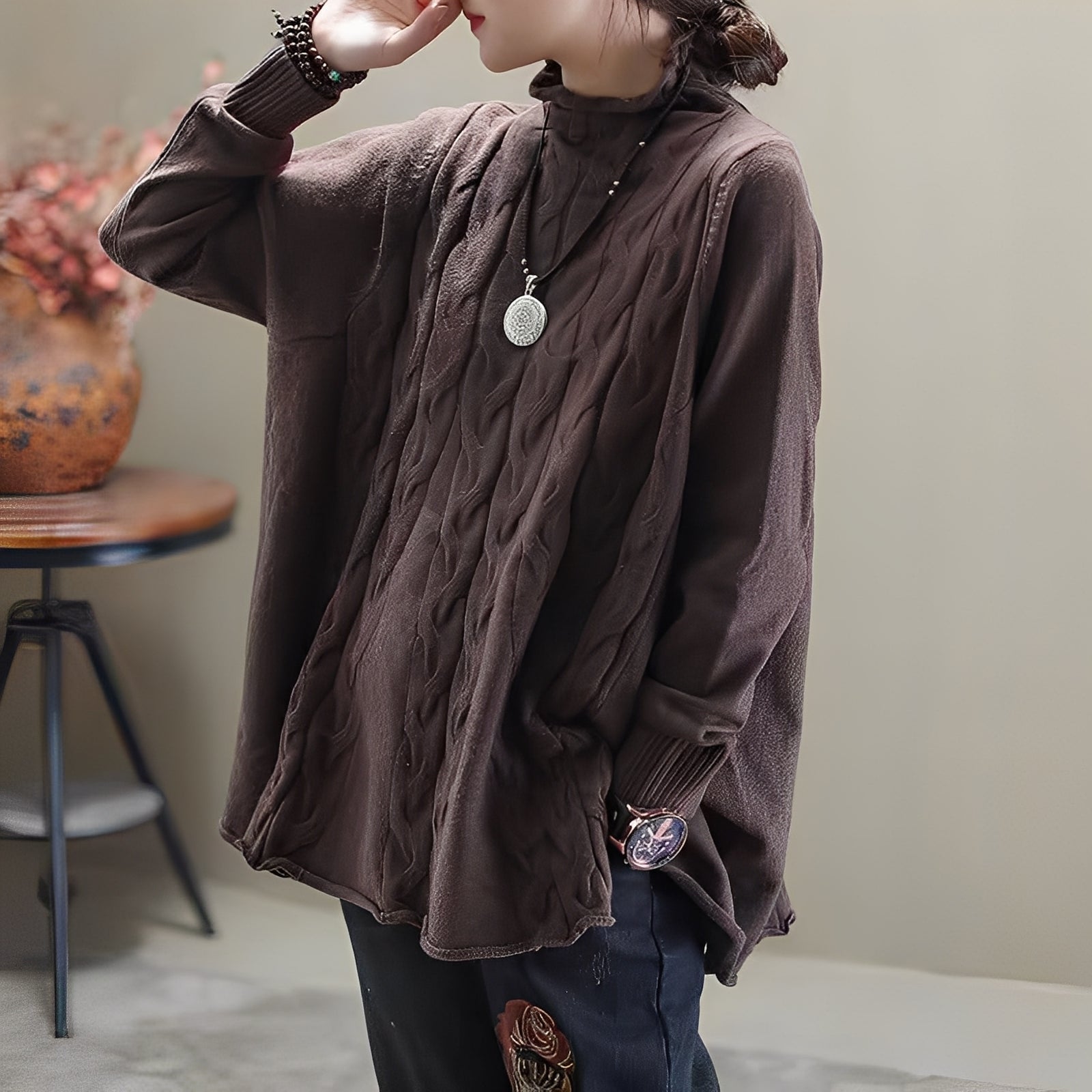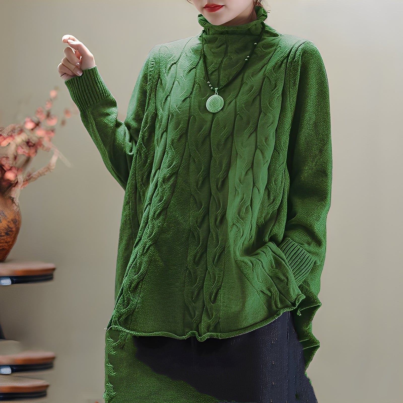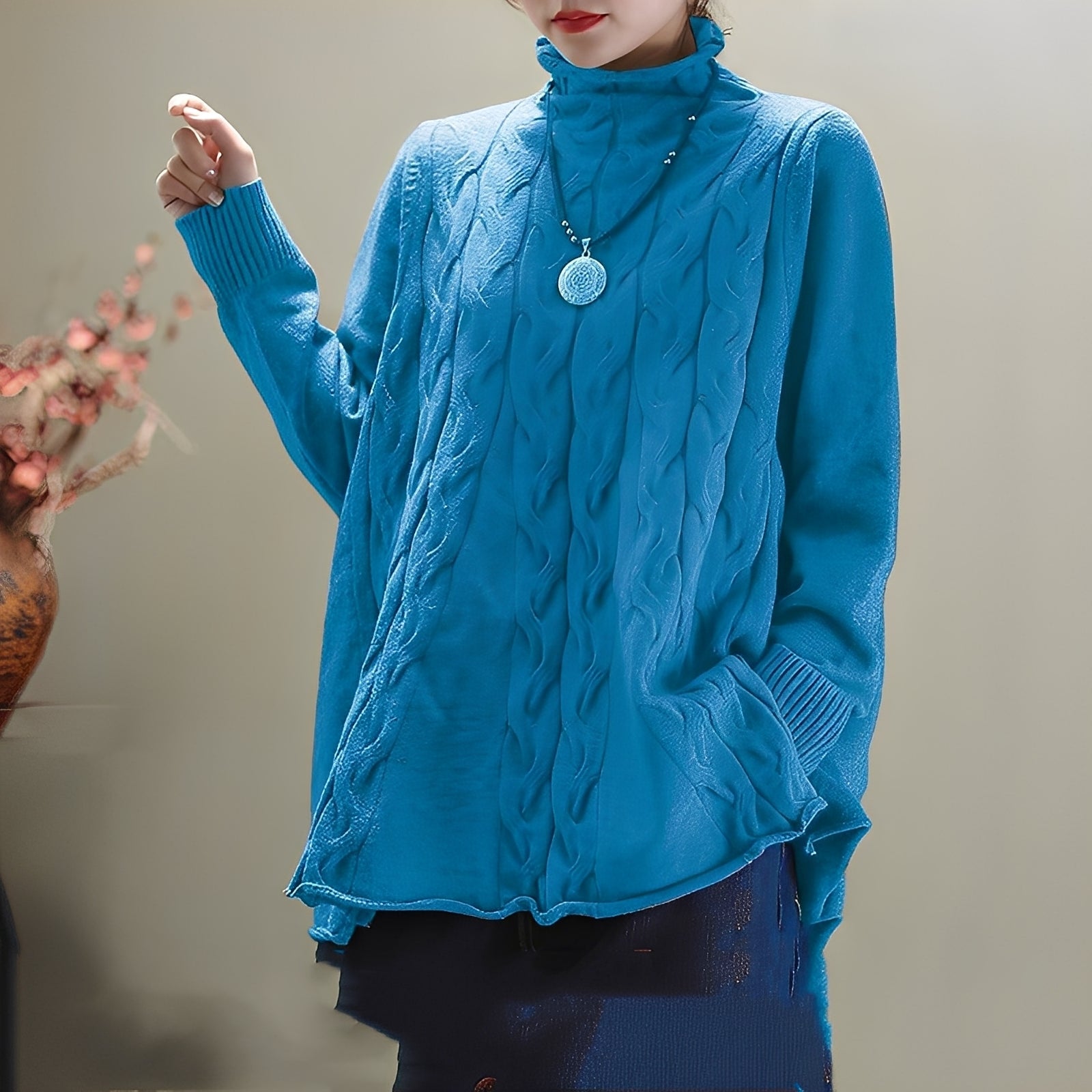 Sweter Merla łączy klasyczny design z praktycznymi detalami. Jego elegancki golf i rozcięcie po boku zapewniają zarówno ciepło, jak i swobodę ruchów. Miękki dzianinowy materiał gwarantuje przyjemne uczucie noszenia i czyni go idealnym na relaksujące jesienne dni. Jego prosty styl pozwala na wiele kombinacji – od jeansów po spódnice.Dlaczego „Merla – elegancki sweter z golfem i bocznym rozcięciem” nie powinien zabraknąć w Twojej szafie: