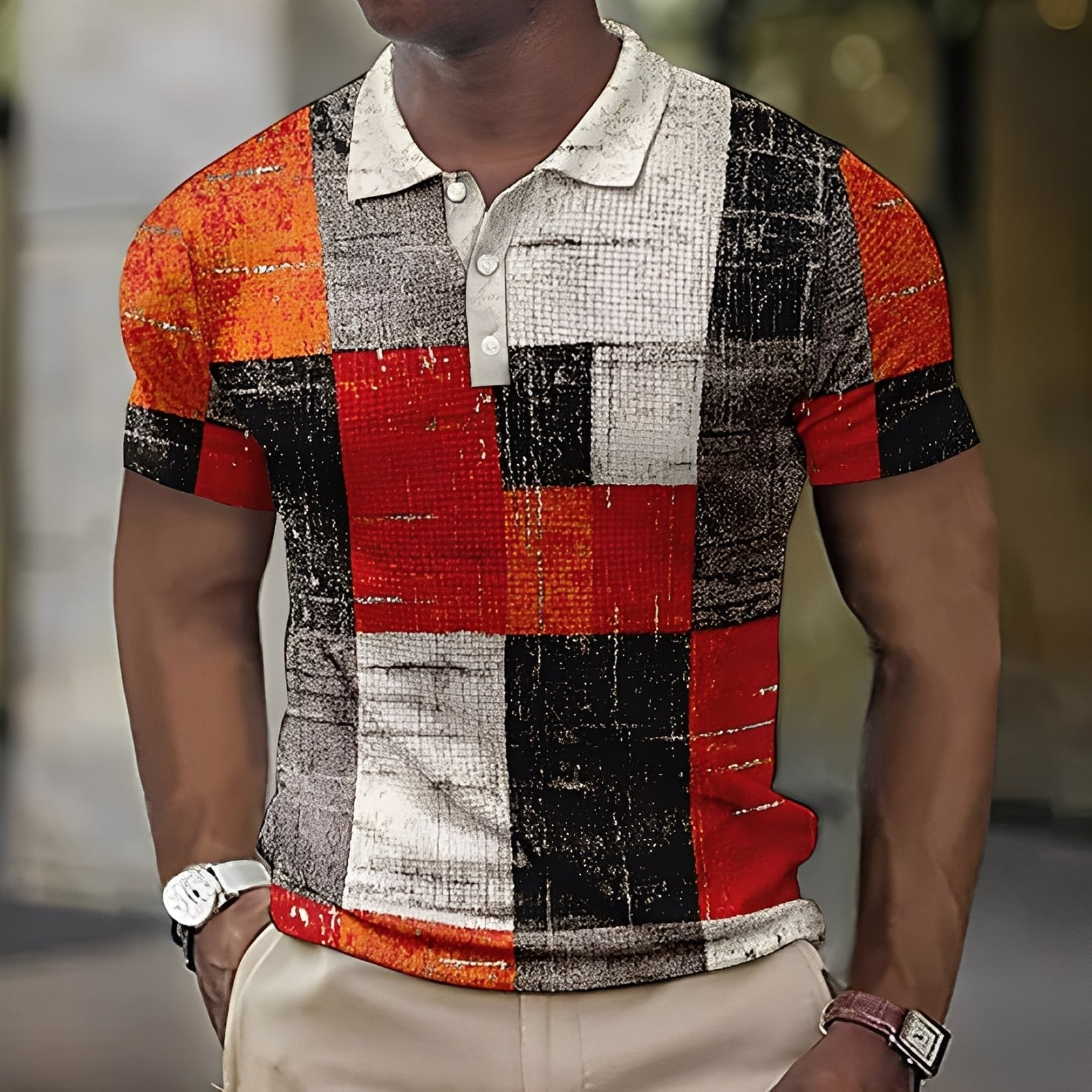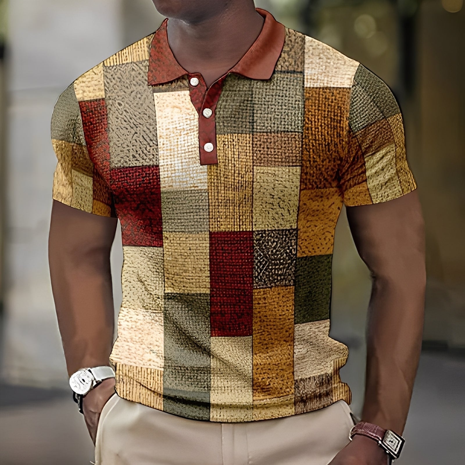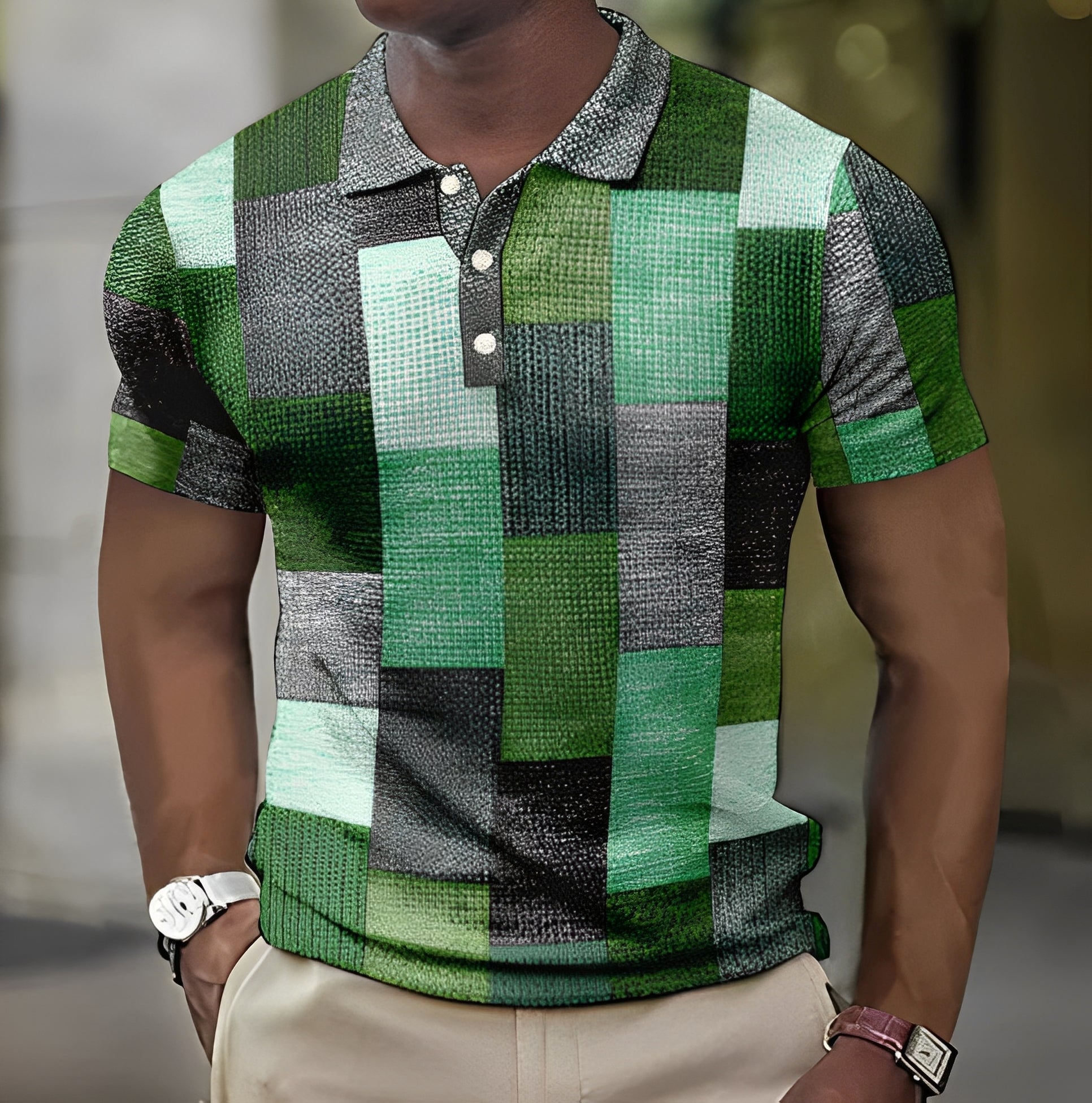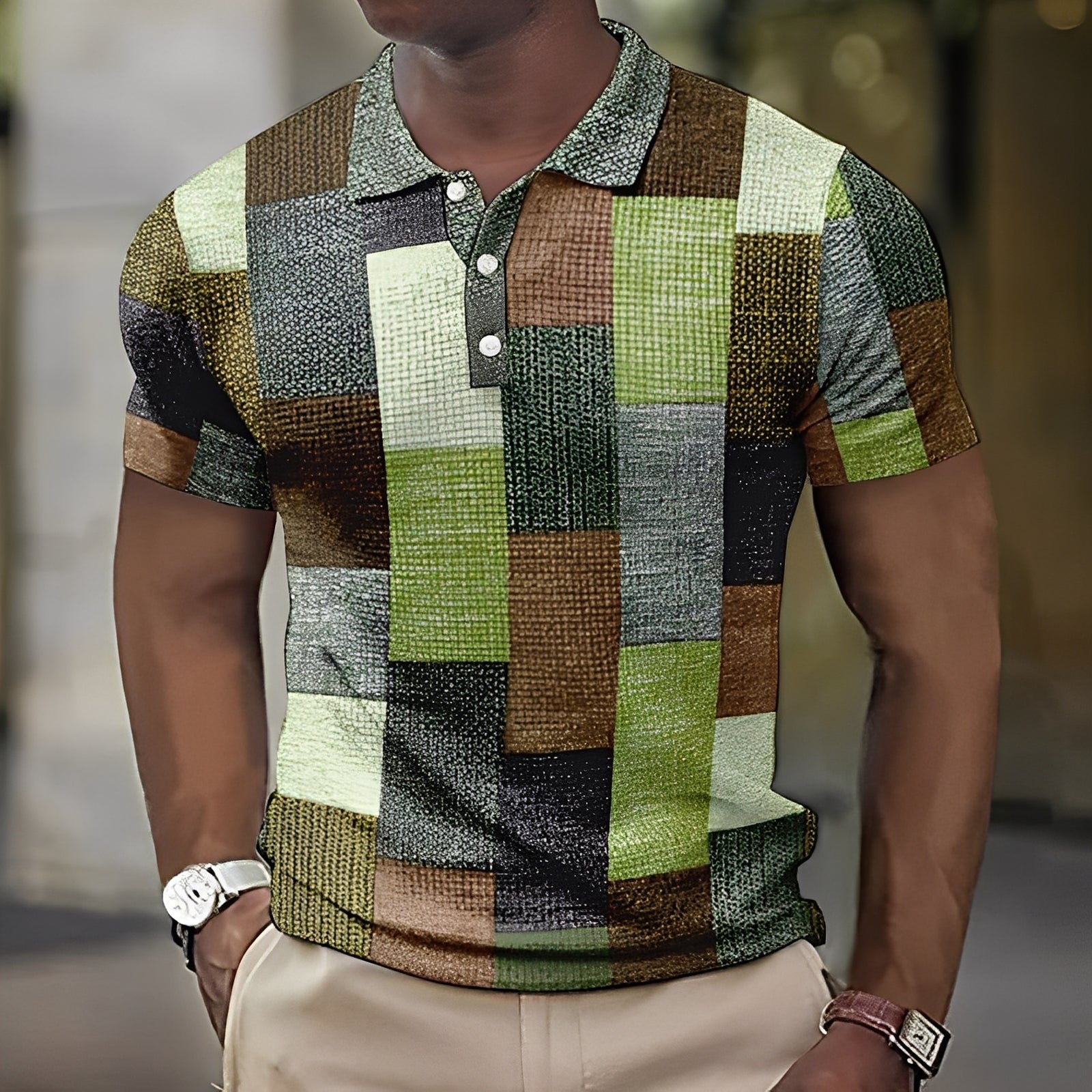 Reginald - Elegancka kolorowa koszulka męska z kołnierzykiem