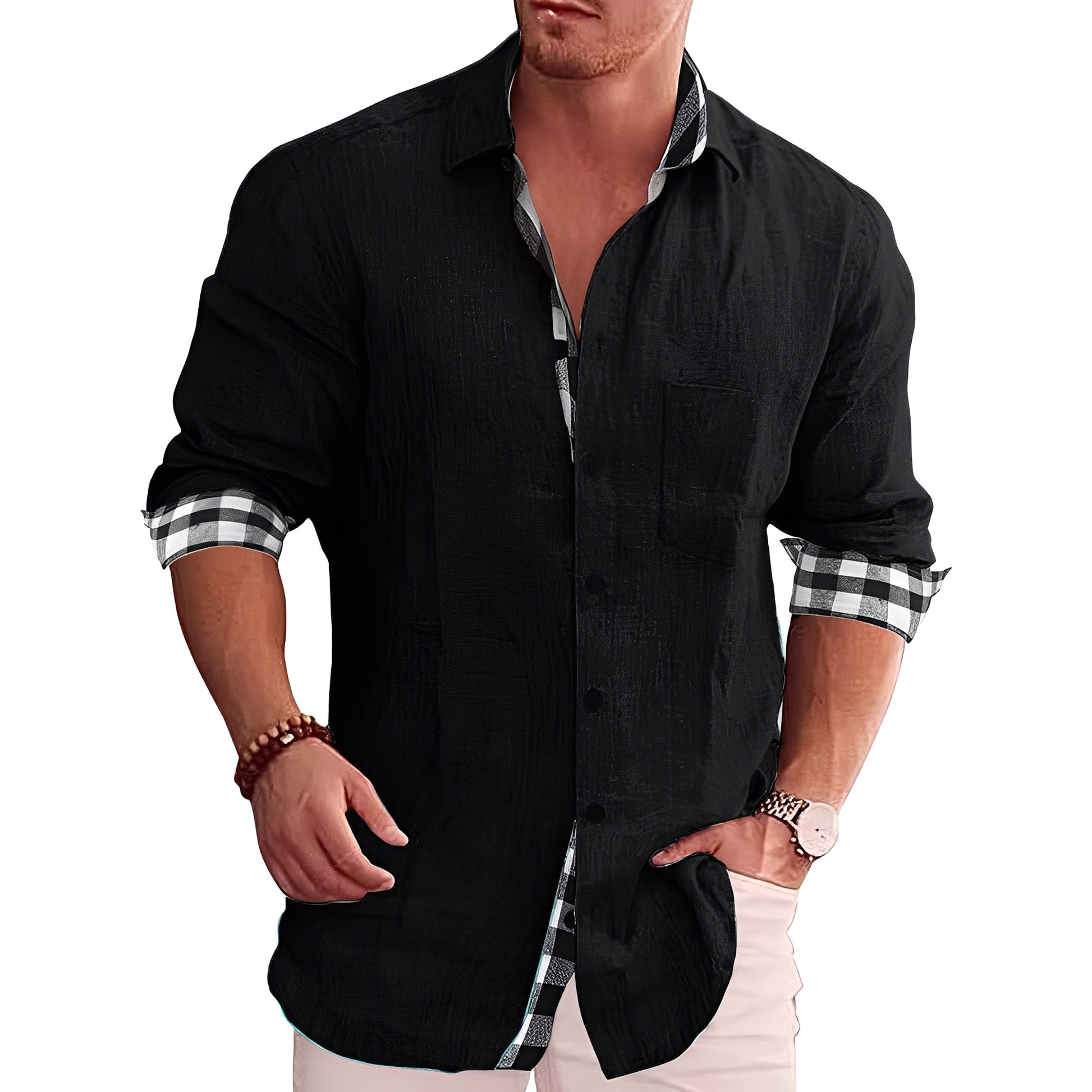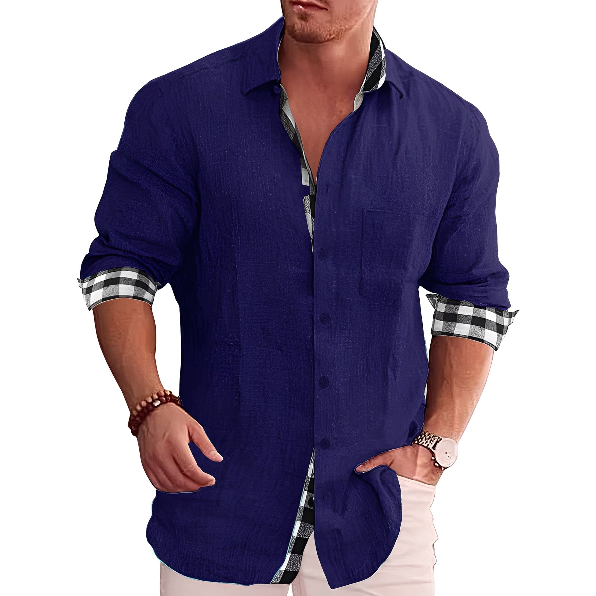 Justin - męska koszula z długim rękawem z podwójnym kołnierzem