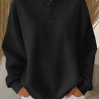 Dieser Pullover kombiniert ein modernes Waffelmuster mit einer eleganten Knopfleiste, die dem Stil eine feminine, entspannte Note verleiht. Das weiche Material sorgt für hohen Komfort und eignet sich perfekt für kühlere Tage, ob zu Hause, im Büro oder unterwegs. Die lockere Passform lässt sich vielseitig kombinieren und passt ausgezeichnet zu Jeans, Leggings oder Röcken. Ein bequemes Must-have für Damen, die Komfort und Stil gleichermaßen schätzen.