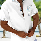 Ogie – Retro-Fischmotiv Leinenhemd