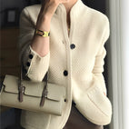 Erweitern Sie Ihre Garderobe mit dem Kaschmir-Cardigan „Arlette“, wo Komfort und klassischer Stil aufeinandertreffen.