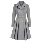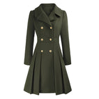 - Figurbetonte, zweireihige Form : betont die Silhouette und verleiht einen klassischen, eleganten Look.