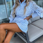 Damen-Spitzen-Set – Langarmbluse und High-Waist-Shorts. Ein elegantes und leichtes Set, das Raffinesse und Komfort vereint, ideal für warme Tage und besondere Anlässe.