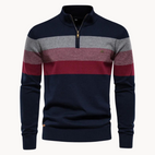 Der Aurullo Pullover mit Viertelzipper hat ein schickes Streifenmuster und ist aus einer hochwertigen Baumwollmischung gefertigt. Dieser superweiche Pullover fühlt sich angenehm auf der Haut an und bietet außergewöhnliche Wärme. Der stilvolle Zipper und der eng anliegende Schnitt machen diesen Pullover zu einem vielseitigen Must-have, ideal für jede Gelegenheit.