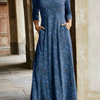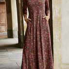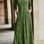 Das Bernadine-Kleid kombiniert ein elegantes, langes Design mit einem markanten Vintage-Muster, das sofort auffällt. Der weiche Stoff schmeichelt der Figur und bietet ein leichtes, angenehmes Tragegefühl – ideal für Frühling, Sommer oder kühle Herbsttage. Die langen Ärmel und die weite Passform machen dieses Kleid zu einem vielseitigen Begleiter für besondere Anlässe oder entspannte Tage in der Stadt. Mit Sandalen oder kurzen Stiefeln ist ein modischer Look mühelos möglich.