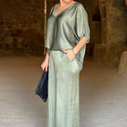 Erlebe die Welt der Eleganz mit dem Brittany Satin Eleganz Set. Dieses schicke Zweiteiler-Set vereint Stil mit Bequemlichkeit. Egal, ob für besondere Ereignisse oder im modischen Alltag, dieses Satin-Set lässt dich immer mühelos elegant erscheinen. Der weiche, glänzende Stoff verleiht eine luxuriöse Note, während der bequeme Schnitt viel Bewegungsfreiheit bietet. Sei bereit, mit Brittany zu strahlen, wo Luxus und Behaglichkeit verschmelzen.