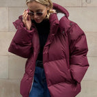 Die Camille Jacke vereint modernes Design mit guter Wärme. Gefertigt aus gepolsterter Baumwolle, sorgt sie für Wärme und Komfort. Die nützliche Kapuze bietet zusätzlichen Schutz bei Wind und Regen, während der kurze Schnitt einen trendigen Look liefert. Ideal für kühlere Tage in der Stadt oder entspannte Spaziergänge.