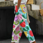 Catherina - Weite Leinenhose mit Blumenprint