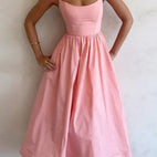 Betreten Sie jeden Raum voller Selbstvertrauen und Eleganz mit dem hinreißenden Charry-Kleid. Es ist so entworfen, dass es Ihre Figur zur Geltung bringt, mit filigranen Trägern und einem Rundhalsausschnitt, der eine bemerkenswerte Silhouette schafft. Die markanten Falten geben dem Kleid Struktur und Eleganz, was es zur idealen Wahl für einen Stadtbummel oder besondere Anlässe macht. Ob beim Tanzen oder Abendessen, in diesem Kleid wirken Sie stark und charmant.