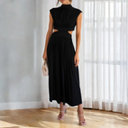 Das Christina - Lockeres Maxikleid mit Taillenausschnitt für Damen besticht durch seinen lockeren Schnitt und das feminine Design. Der dezente Ausschnitt an der Taille betont elegant die Figur und verleiht dem Kleid eine zeitgemäße Note. Dank des leichten Materials trägt es sich angenehm und ist perfekt für den Alltag, die Freizeit oder sommerliche Ereignisse. Ein Kleid, das stilvolle Gelassenheit und Komfort vereint.