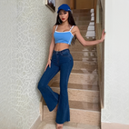 Ergänzen Sie Ihre Freizeitmode mit der hoch taillierten Jeans Clarissa, ideal für Frauen, die einen Vintage-Stil mit modernem Komfort vereinen möchten. Gefertigt aus hochwertigem, weichem Denim, bietet sie einen schmeichelhaften Schnitt, der die Taille hervorhebt und die Beine länger wirken lässt. Das klassische Schlaghosen-Design verleiht einen Retro-Touch und ist perfekt für lockere Treffen, Brunches oder Abendveranstaltungen. Diese Jeans lässt sich problemlos mit Blusen, T-Shirts oder Pumps kombinieren und passt zu jedem Anlass. Ein Muss für Frauen, die eine stilvolle, bequeme und zeitlose Jeans suchen.