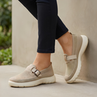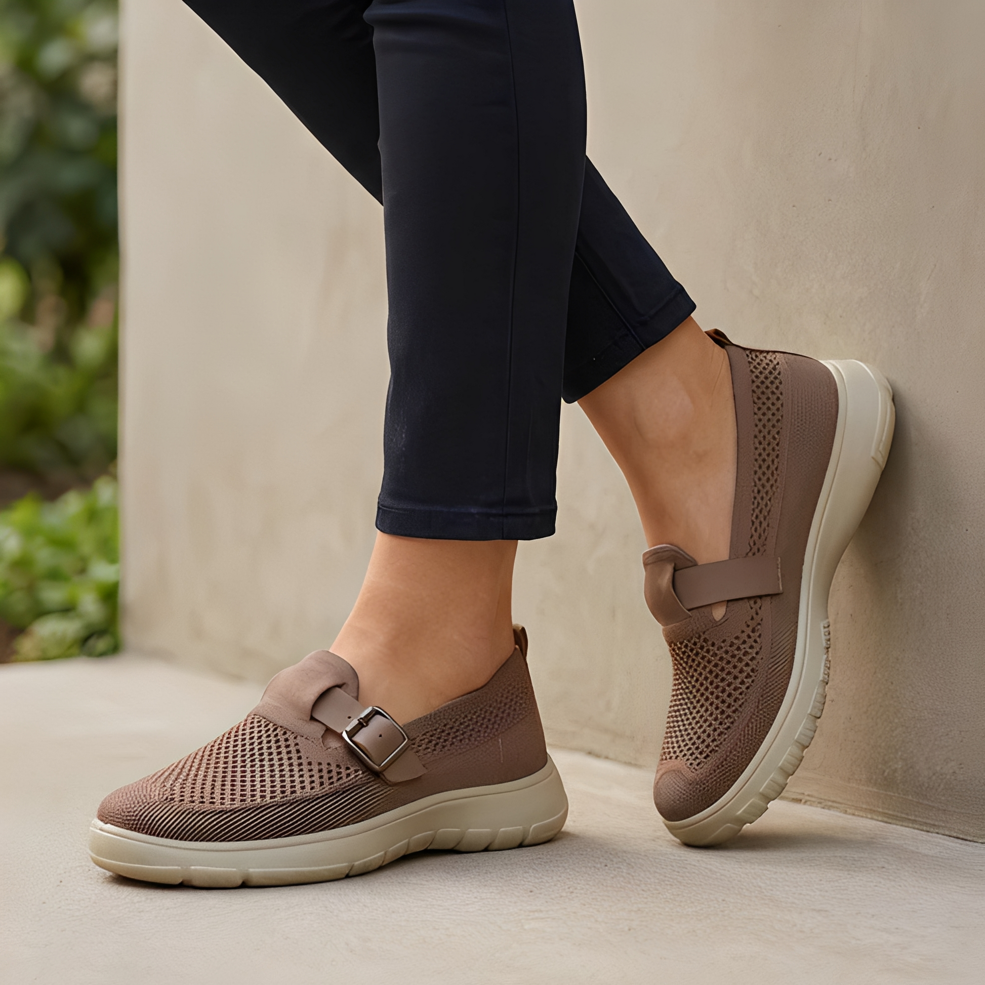 Erleben Sie Komfort den ganzen Tag über mit diesen orthopädischen Strick-Mokassins, die sowohl atmungsaktiv als auch modisch sind. Das flexible Strickmaterial sorgt für beste Luftzirkulation, hält Ihre Füße kühl und sorgt für ein gepflegtes Erscheinungsbild. Ein verstellbarer Riemen bietet eine individuelle Passform, während die strukturierte Sohle bei jedem Schritt sicheren Halt gewährt. Ideal für entspannte Ausflüge, Arbeitstage oder Wochenendabenteuer, vereinen diese Mokassins Funktionalität und Stil. Genießen Sie sicheren Halt ohne Stilkompromisse.
