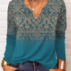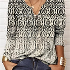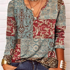 Die Denise Bluse bringt Farbe und Leichtigkeit in Ihr Outfit. Der lockere Schnitt zusammen mit dem tiefen V-Ausschnitt und dem lebendigen Boho-Muster sorgt für ein entspanntes, modisches Aussehen. Die langen Ärmel mit elastischem Bündchen bieten angenehmen Tragekomfort und machen das Oberteil vielseitig einsetzbar – ob mit Jeans, Röcken oder Shorts. Perfekt für Frühling, Sommer und entspannte Herbsttage.So wird „Denise – Bunte Boho Langarm V-Ausschnitt Bluse“ zum Must-have: