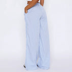 Die Damenhosen - Hohe Taille - Breites Bein - Elastischer Bund - Leicht Lässig kombinieren Komfort und Stil. Diese Hosen haben eine hohe Taille mit einem elastischen Bund für eine perfekte Passform, breite Beine für einen lässigen Look und sind aus leichtem Material gefertigt.