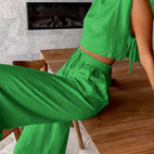 Entdecken Sie unser Florencia Sommer-Set, das Bequemlichkeit und Stil kombiniert. Bestehend aus einem weiblichen Crop-Top mit Schnürung und einer langen, fließenden Hose mit elastischem Bund, ist es ideal für sommerliche Ausflüge, Ihren Urlaub oder Abende mit Freunden.