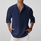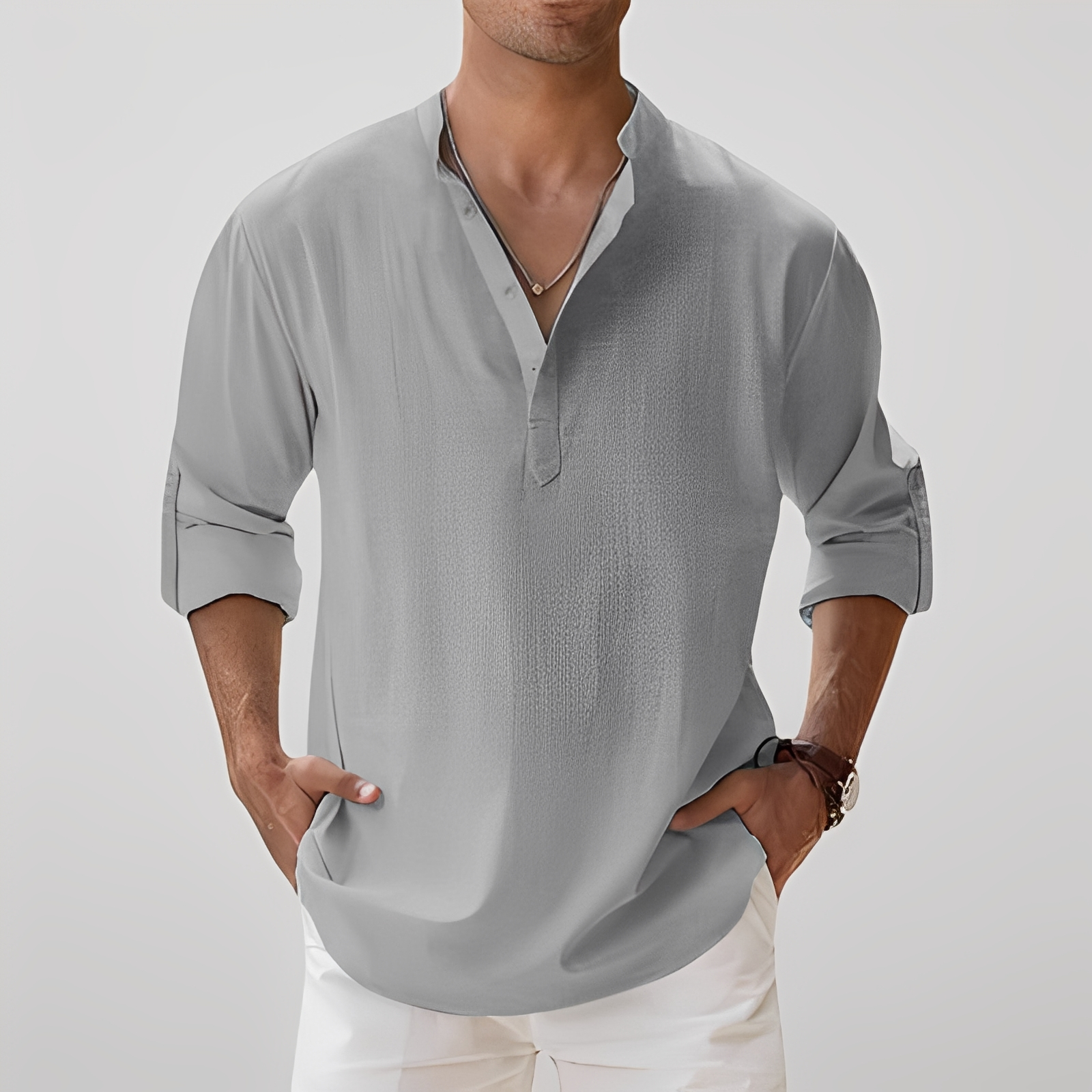 Das Freddy Langarmhemd für Herren wurde entwickelt, um höchsten Komfort und zeitlosen Stil zu garantieren. Hergestellt aus einem leichten und luftdurchlässigen Material, hält es Sie auch an den heißesten Tagen kühl und sorgt gleichzeitig für einen gepflegten, entspannten Look. Mit seinem klassischen Schnitt und den langen Ärmeln ist es ideal, um es alleine oder in Schichten bei formellen und legeren Anlässen zu tragen. Vielseitig und leicht kombinierbar, passt es gut zu Chinos, eleganten Hosen oder Jeans. Bequem, atmungsaktiv und schick, ist das Freddy Hemd ein unverzichtbares Teil in der modernen Herrengarderobe.