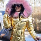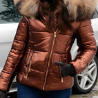 Jessica - Glänzende Frauen-Daunenjacke mit Kapuze