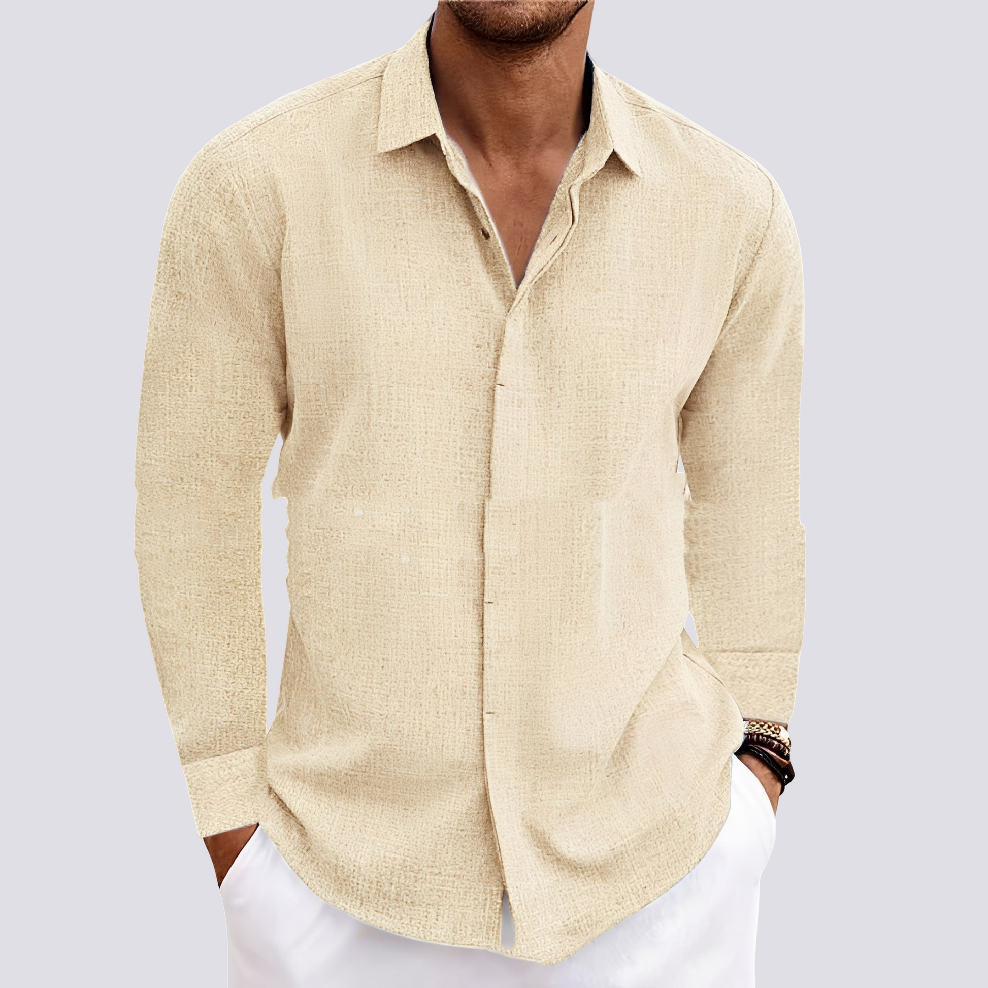 Ein elegantes Langarmhemd für Herren, die Wert auf Komfort und Natürlichkeit legen.