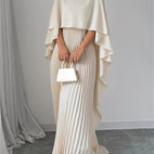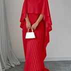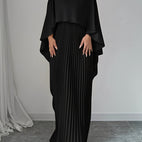 Das lange Kleid Katherine überzeugt mit hohem Kragen, weiten Fledermausärmeln und einem plissierten, fließenden Rock. Der entspannte Schnitt bietet angenehmen Tragekomfort, während das elegante Design jede Bewegung sanft begleitet. Ideal für festliche Gelegenheiten, Abendessen oder besondere Momente, die einen eleganten Auftritt erfordern.