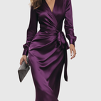 Das Korina – Elegantes Wickelkleid verkörpert moderne Eleganz mit seinem schmeichelhaften Wickeldesign und der anpassbaren Taille, die die Figur akzentuiert. Der fließende, schimmernde Stoff reflektiert das Licht bei jeder Bewegung und schafft einen glamourösen und stilvollen Look. Perfekt für Abendveranstaltungen, Cocktails oder romantische Dinner, bietet dieses Kleid Komfort und zeitlose Eleganz.