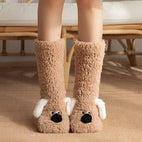 Die Krystelle-Socken bestehen aus weichem, dichtem Plüsch, der Ihre Füße angenehm warm hält. Das süße Hund-Cartoon-Design setzt einen fröhlichen Akzent, während die rutschfeste Sohle einen sicheren Stand auf glatten Böden bietet. Ideal für Zuhause, zum Entspannen auf dem Sofa oder gemütliche Wintermorgen. Diese Haussocken vereinen Wärme, Komfort und einen spielerischen Stil.