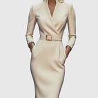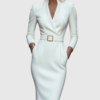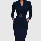 Der geformte Gürtel betont die Taille, während der Bleistift-Schnitt die natürlichen Kurven des Körpers für einen eleganten Look umschmeichelt.
