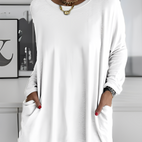Dieser gemütliche Pullover mit Rundhalsausschnitt eignet sich ideal für ruhige Tage oder den täglichen Einsatz im Büro. Das einfache Design mit langen Ärmeln und praktischen Taschen verleiht „Leola“ eine moderne und zeitlose Erscheinung. Der lockere Schnitt bietet hohen Tragekomfort, während die hochwertige Verarbeitung Stil und Funktionalität vereint. Egal ob zu Jeans oder Leggings – „Leola“ kann vielseitig getragen werden und passt zu jedem Anlass.