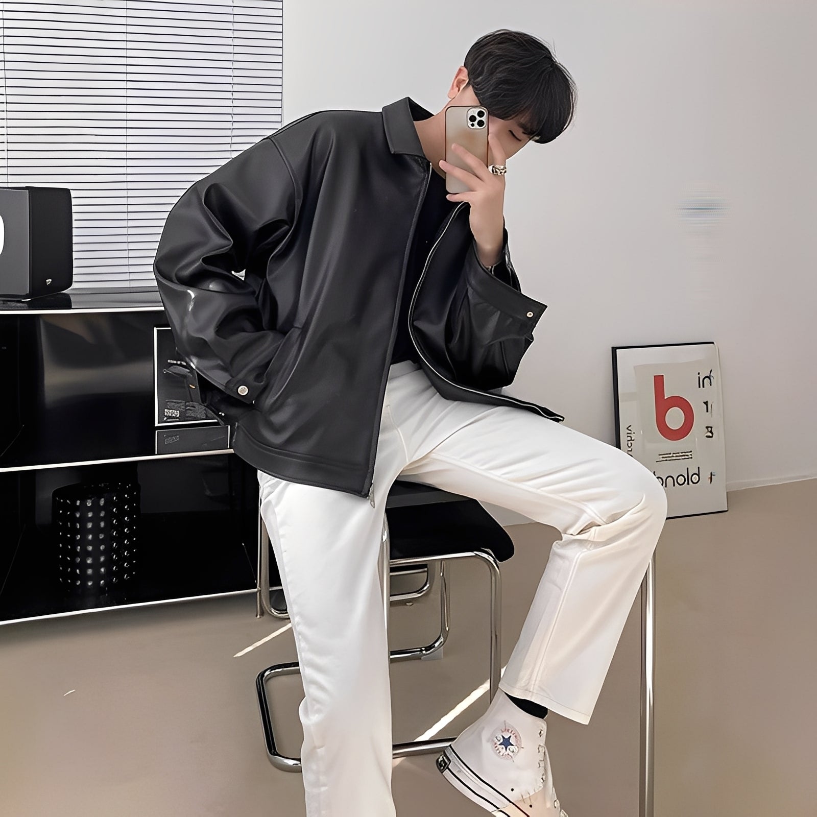 Verleihen Sie Ihrem Look eine auffällige, minimalistische Note mit unserer Lohan Oversize-Leder-Bomberjacke für Herren – eine zeitgemäße Neuinterpretation eines klassischen Essentials, ideal für einen selbstbewussten Streetwear-Look und einfaches Schichten im Alltag. Diese Jacke betont durch ihre klaren Linien und die kastige Form selbst die schlichtesten Outfits. Sie passt hervorragend zu T-Shirts, Hoodies oder Rollkragenpullovern und ist perfekt für entspannte Tage sowie abendliche Aktivitäten. Das glatte Leder außen und das angenehm gefütterte Innere bieten die perfekte Mischung aus Haltbarkeit und Komfort. Egal ob unterwegs oder bei einem Event, diese Jacke verleiht genau die richtige Portion Stil und Selbstvertrauen.