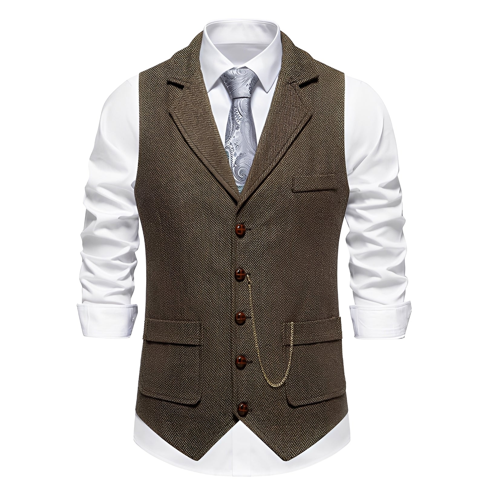 Deshalb sollte ‚Luther – Retro Herrenweste mit Fischgrätenmuster‘ in Ihrem Kleiderschrank nicht fehlen:
