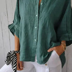 Lena - Damenbluse aus Leinen mit V-Ausschnitt