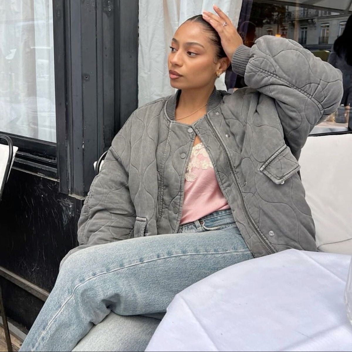 Die Madisyn Bomberjacke kombiniert ein aktuelles, gestepptes Design mit einer bequemen Passform. Das leicht glänzende Material gibt der Jacke einen schicken Look, während die Füllung schön warm hält. Der typische Rippenkragen gibt einen sportlichen Touch und passt super. Egal ob zu Jeans oder Leggings – Madisyn passt einfach zu jedem Outfit und ist ideal für kühlere Tage. Eine flexible Wahl für modebewusste DamenWarum „Madisyn“ in Ihrem Kleiderschrank nicht fehlen sollte:.
