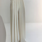 Feminine Eleganz – die Hose mit hohem Schnitt und sanften Falten.