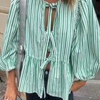 Diese leichte Bluse kombiniert Komfort und Stil. Perfekt für einen lässigen Look oder einen Sommertag. Die gestreifte Bluse mit Puffärmeln ist ein Muss für jede Garderobe.
