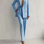 Entdecken Sie das Marva Blazer-Hosen-Set – ein stilvoller Damenanzug in angesagten Farben wie Hellblau, Schwarz, Rosa und Türkis. Der dazu passende moderne Blazer ist figurschmeichelnd und aus dehnbarem Material für einen angenehmen Tragekomfort den ganzen Tag über gefertigt. Dieses zeitlose Set eignet sich hervorragend für Büro, Meetings und besondere Anlässe und ergänzt sowohl einen professionellen als auch einen eleganten Freizeitlook.