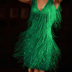 Entdecken Sie unser Mégane-Cocktailkleid, das durch seine Fransen und Federn besticht - ein herausragendes Stück für besondere Abende. Es vereint verspielte Fransen-Designs mit feinen Federn, die jedem Schritt Eleganz und Dynamik verleihen. Aus hochwertigen Stoffen gefertigt, bietet es eine schmeichelhafte Passform und bleibt dabei angenehm für Partys, Events oder besondere Anlässe. Sein stilvolles Design lässt sich mühelos mit modischen Schuhen und Accessoires zu einem vollständigen, stilvollen Look kombinieren. Machen Sie jeden Auftritt unvergesslich mit diesem spektakulären Cocktailkleid.