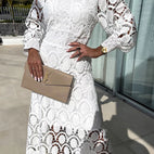 Erleben Sie eine Welt voller Stil und Romantik mit dem Melody Schicken Spitzen-Midi-Kleid. Dieses besondere Kleid ist eine Hommage an zeitlose Schönheit, modern interpretiert für die heutige Frau. Mit seinem hohen Kragen und den attraktiven Puffärmeln aus feiner Spitze strahlt es eine einzigartige Eleganz aus. Hergestellt aus hochwertiger Spitze und in einem vorteilhaften Midi-Stil geschnitten, ist dieses Kleid die perfekte Wahl für besondere Gelegenheiten, die einen bleibenden Eindruck hinterlassen möchten – von schicken Abendessen bis zu eleganten Empfängen. Entdecken Sie, wie das Melody Kleid Ihre natürliche Anmut betont und Sie zum Highlight jeder Veranstaltung macht.