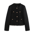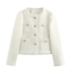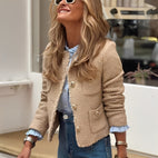Diese kurze Tweedjacke für Damen, Muriel mit Knöpfen, verbindet ein klassisches Design mit lässiger Eleganz. Sie ist so geschnitten, dass sie eine schmeichelhafte Silhouette bietet und sich hervorragend mit Hosen, Röcken oder Jeans kombinieren lässt, sei es im Büro oder am Wochenende. Der klassische Knopfverschluss verleiht eine elegante Note, während der strukturierte Tweedstoff jedem Outfit Tiefe und Stil gibt. Leicht und formgebend, bietet sie maximalen Komfort und bewahrt gleichzeitig eine stilvolle Linie. Ein unverzichtbares Kleidungsstück für Frauen, die Mode, Komfort und Selbstbewusstsein schätzen.