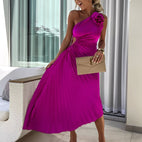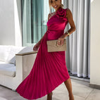 Rachael - Schickes Damenkleid mit Falten und Blumen an der Schulter