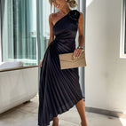 Das Kleid Rachael bringt weiblichen Stil zu jedem Anlass. Mit seinem fließenden Stoff und sanften Falten betont es die Figur, während die geschickt gestalteten Schulterdetails mit Blumen einen romantischen Touch hinzufügen. Der schmeichelhafte Schnitt bietet eine edle Form – ideal für besondere Events, Abendessen oder Gelegenheiten, in denen Sie elegant erscheinen möchten.