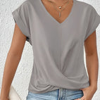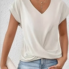 Die Rachael - Locker geschnittene Bluse mit besonderem V-Ausschnitt für Damen kombiniert eine entspannte Passform mit einem modernen Design. Der besondere, leicht unregelmäßige V-Ausschnitt verleiht der Bluse eine einzigartige und stilvolle Note. Dank des lockeren Schnitts fällt der Stoff angenehm und bietet den ganzen Tag über Komfort. Egal ob zu Jeans, Stoffhosen oder Röcken – diese Bluse lässt sich vielfältig kombinieren. Eine ideale Wahl für Frauen, die Bequemlichkeit und Stil schätzen.