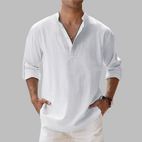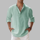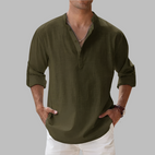 Das Leinenhemd Ren wurde entworfen, um einen gepflegten Sommerlook zu schaffen und gleichzeitig hohen Tragekomfort bei steigenden Temperaturen zu gewährleisten. Sein luftiger Schnitt bietet Bewegungsfreiheit und verleiht eine natürliche Ausstrahlung, perfekt für den Urlaub, Outdoor-Aktivitäten oder einen entspannten Bürolook. Der klassische Kragen und die Knopfleiste formen eine zeitlose Silhouette, die sich leicht kombinieren lässt. Die leichte Textur sorgt für einen entspannten, eleganten Look, der sowohl zu Shorts als auch zu Chinos oder luftigen Hosen passt. Ein unverzichtbares Kleidungsstück für einen komfortablen und stilvollen Sommer.