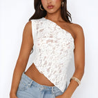 Damen-Top Einzelne Schulter - Spitze mit Blumenmuster - Asymmetrisches Design - Eleganter Schnitt: Dieses wunderschöne Top mit einzelner Schulter kombiniert Eleganz mit einem modernen und asymmetrischen Design. Ein echter Blickfang!